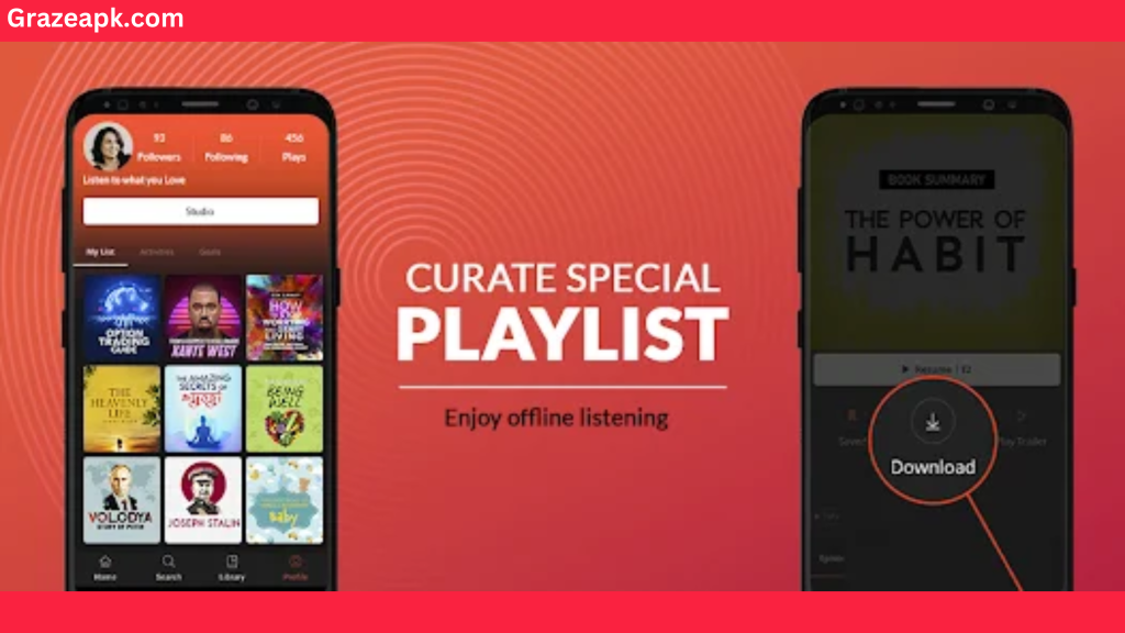 You can download the cracked version of Kuku FM MOD APK from grazeapk.com to enjoy all the premium features for free of cost.